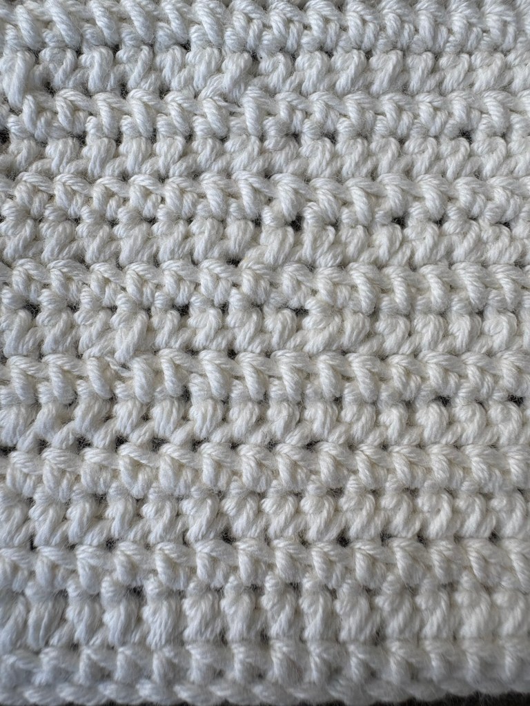 - Characteristics: not as dense as SC, drapier, and more like flowing rows than box stitches, naturally looser tension than single crochet stitch