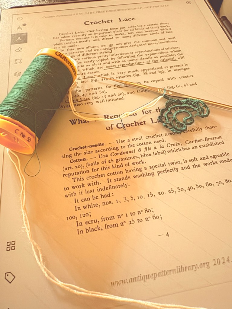 This evolution from tambour into crochet is what led to the discovery of Crochet Lace as a quicker, cheaper alternative to needle and bobbin Venetian- style lace.